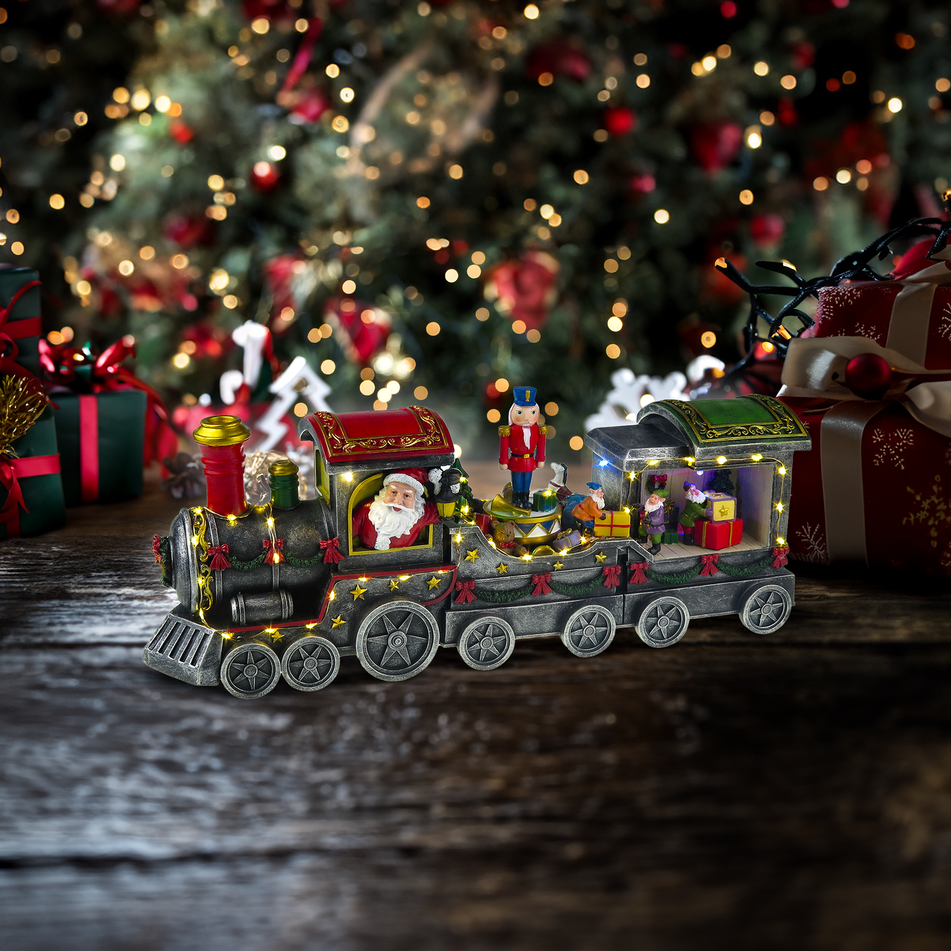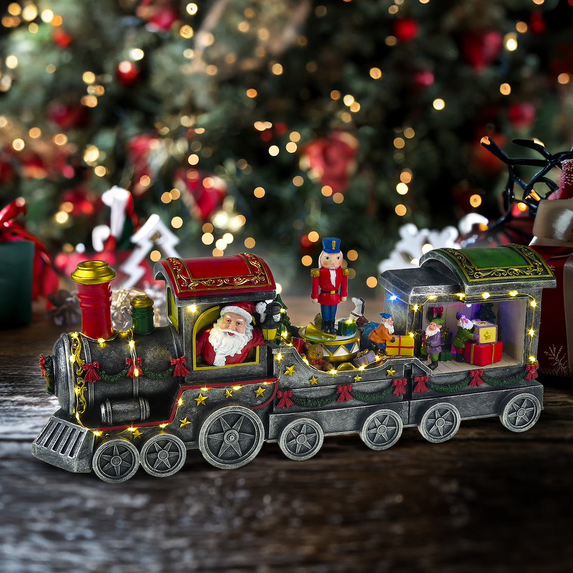 Of je hem nu als middelpunt plaatst of integreert in je kerstdorp, deze LED-verlichte muzikale kerst Trein wordt een geliefd onderdeel van uw vakantietradities. Laat de trein voort tuffen en vreugde en opwinding verspreiden, terwijl de Kerstman en de draaiende notenkraker de harten veroveren van iedereen die getuige is van dit grillige tafereel.